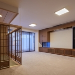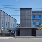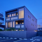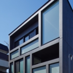 This is a three-story WRC residence in Tokyo. The east side of the house is cantilevered from the exterior wall, and a large-opening sunroom and balcony were created to let in light.