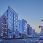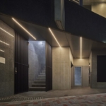 The facade is composed of a stone base on the first and second floors and fair-faced concrete on the third floor and above, with a firewall RC wall inserted like a fin. As a tenant building, various future-ready details were considered, and while keeping the structure simple, the frame and facility plans were designed with consideration for changeability.