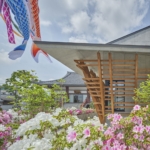 植栽はもともとあったツツジを基調とし、対の梅やあじさいなど、様々な場で四季折々の花から季節を感じられる配置にしており、山門から周囲の舗装を石畳にして段差等をなだらかにし、誰もが歩きやすいようにしている。周囲に小学校があることから、こいのぼりポールを設置するなど、四季や文化を伝えられる外構・外観計画を目指した。